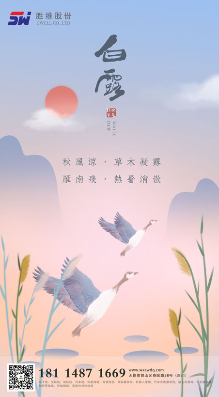 秋空雁度青天遠,疏樹蟬嘶白露寒。晝夜溫差較大,夜間會感到一絲絲的涼意,明顯地感覺到涼爽的秋天到來。"白露"代表著暑熱的結束,萬物隨寒氣增長,逐漸蕭落、成熟。